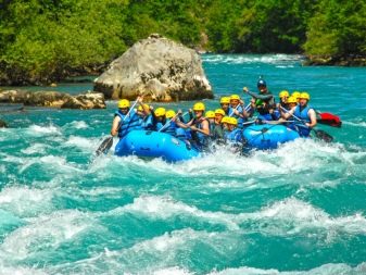 The most popular route is rafting 18 kilometers longFor more experienced tourists there are rafts with a greater length. The cost of rafting includes equipment, transfer to the river, a hearty breakfast and the cost of entering the national park, which is paid locally.
