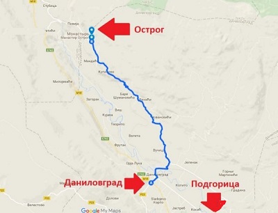 - from Podgorica to Ostrog by train (40 minutes);