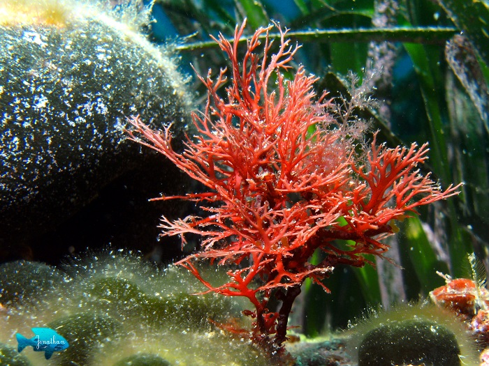Algae has more than 750 species. There are brown, red and green. They are overgrown with seahorses.