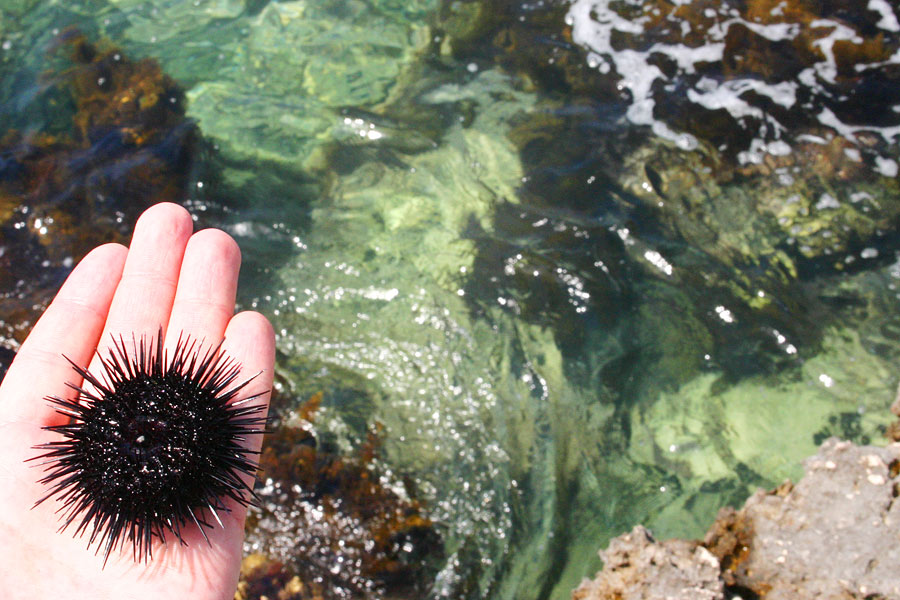 Black sea urchins that live at shallow depths can cause a very painful injection. They are especially dangerous for swimmers with a mask, exploring the bottom, so for safety you should buy special slippers, which are often called coral.