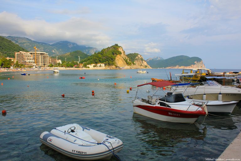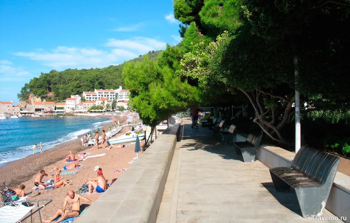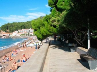 The line near the city beach is conveniently planned - there are cafes and restaurants, small shops and souvenir shops within walking distance. The well-planned embankment runs along the sea coast and rests on a small pier - from here you can go on a small voyage on a small boat and see other cities and beaches of Montenegro.