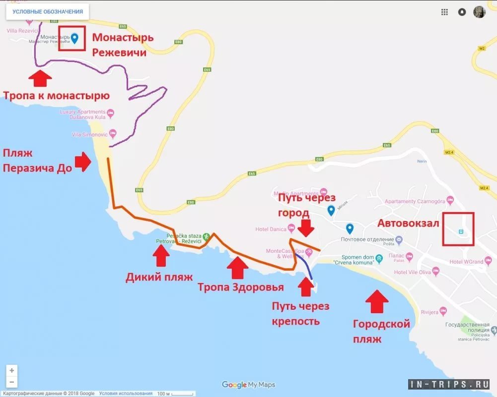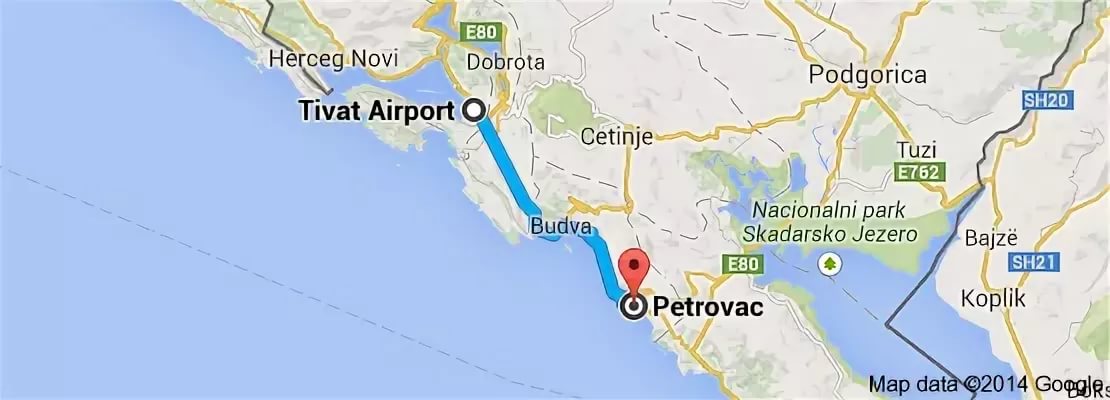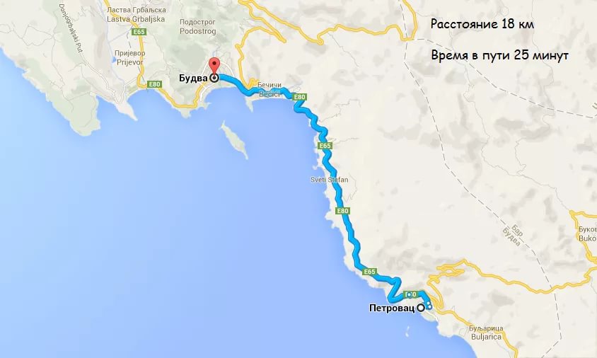 The distance on the map from Tivat to Petrovac is 38 km, and a little more from Podgorica - 46 km. It is best to choose the airport of arrival Tivat, since the largest number of flights depart from Moscow.