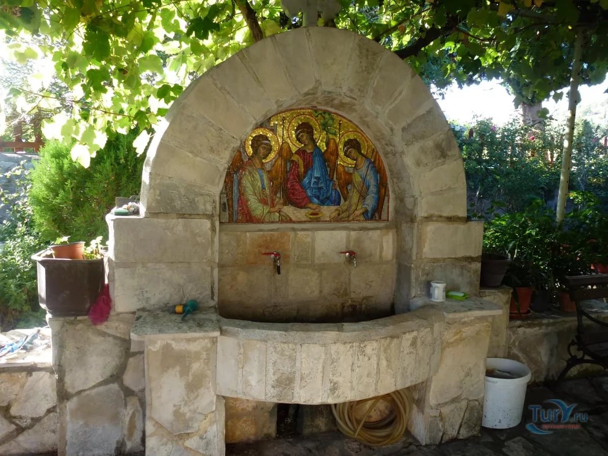Upon entering the territory you will be met the Cathedral of St. Sava, which has 3 belfries and a rare beauty carved iconostasis. The walls of the cathedral are lined with rows of red and white bricks. From the south, all the paintings on the walls are dedicated to saints Savva and Simeon, and on the northern side of the building there is the face of Mary of Egypt, popularly referred to as the “Petit Shopkeeper”. Young women who have recently given birth to children, bring here gifts in the form of olive oil and grapes so that with the help of holy mercy they will have more breast milk for feeding the child.