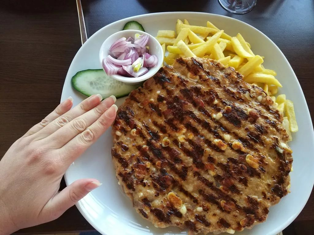 - Pljeskavica (pleskavitsa) - an incredibly large meat patty, which can reach a diameter of 15-20 cm. To make it easier to eat, make a meat patty flat. It is very common in Montenegro, and you can buy splashes everywhere. With a chop make burgers, and if you want to fry and eat it with a side dish, you can buy a semi-finished product in the store and ask them to grill it. This service will surprise no one and it is provided to the buyer for free. Splash is a very satisfying and tasty dish.