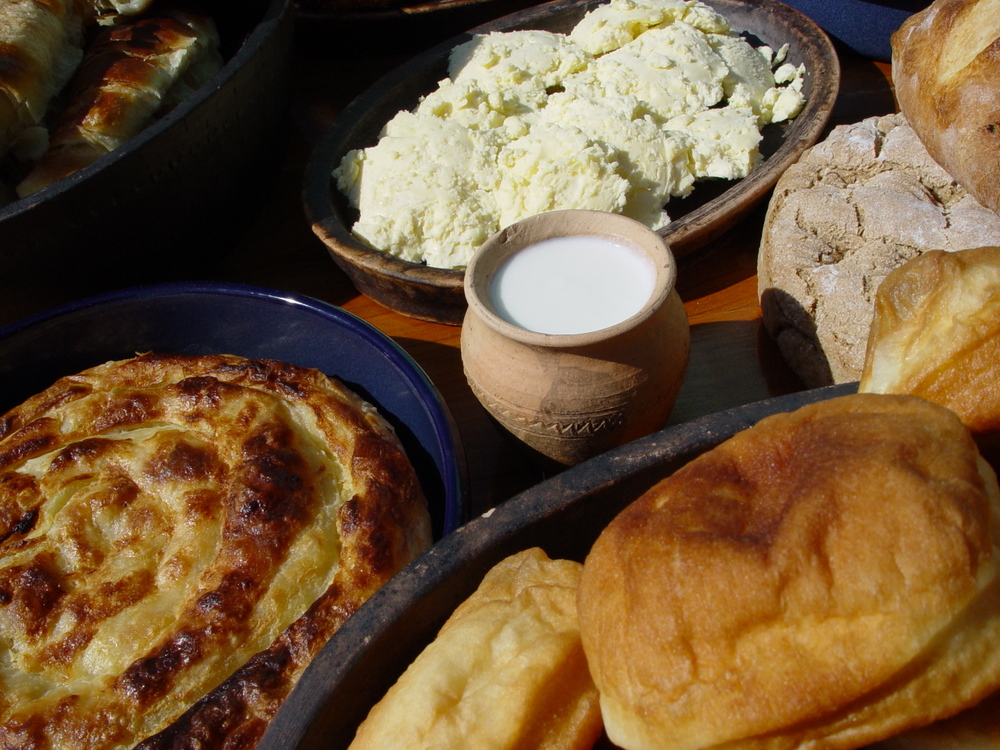 - Kajmaḳ (kaymak) - It is a fermented milk product that looks like ice cream. Prepare it from a fat grade of milk. To taste, kaymak is slightly salty, it can be spread on bread toasts or used as a side dish for meat. Kaymak is also sold in the supermarket, but to taste it is not as good as you can be sure of when trying a home or restaurant cooking dish.