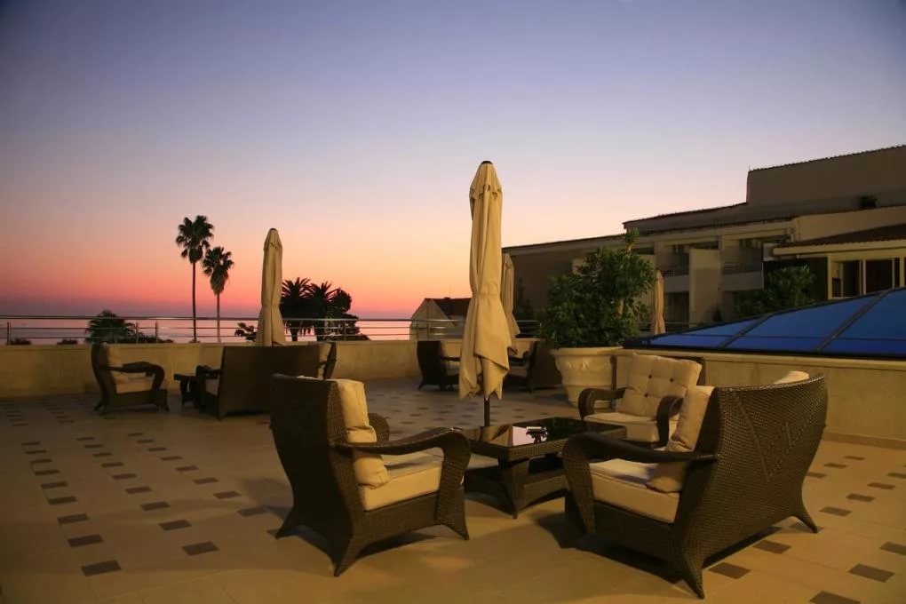Located on the beachfront. The area is surrounded by olive grove and orange trees.