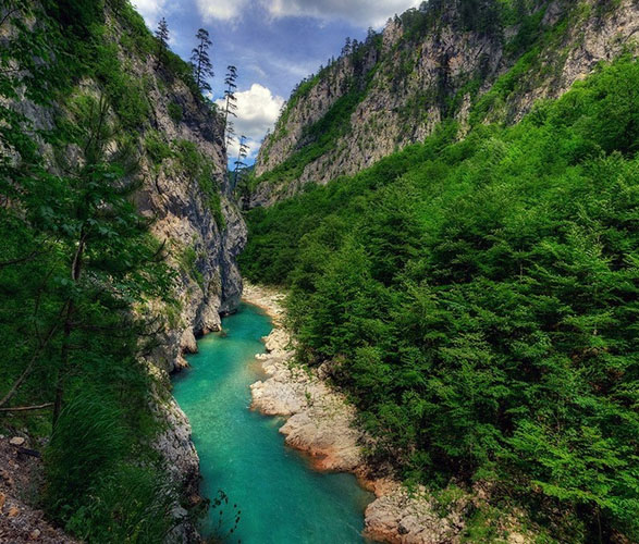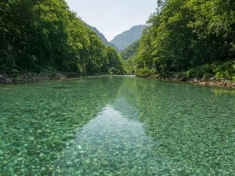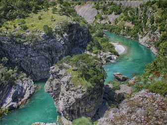 On the mountain slopes near the river there are about 80 different caves, many of which have not yet been fully explored. The Shkrk Cave, which is located near the Black Lake, is the deepest in Europe. Its length goes 800 m deep into the rocks. And at an altitude of 2040 m near the peak of the Head is located Ice Cave.