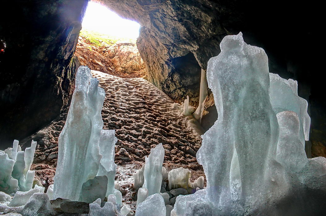 Its depth is only 100 m, but it is known for the fact that it maintains a constant subzero temperature that forms ice stalactites and stalagmites, which delight everyone with their unusual beauty.