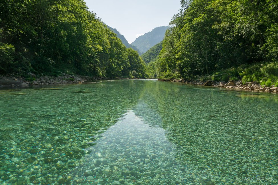 Almost throughout Tara, a powerful current prevails, under which there are many dangerous rapids, but there are also quiet coves formed by river bends. The largest part of Tara flows among the huge mountain slopes and inaccessible rocks, there it is raging and noisy. Near the place of association with Piva Tara calms down and slows down. Through diamond-clear water one can see pebbles on the bottom. Shades of water Tara shimmer from bright green to pearl foam.