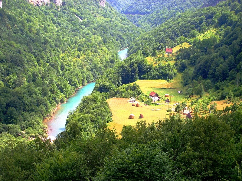 In its middle reaches, the Tara River creates the largest European canyon, its abyss goes deep into 1,300 m, and its length is more than 80 km. It is listed as a UNESCO World Heritage Site.