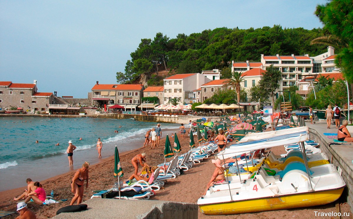 This place is considered the “golden pearl” of all of Montenegro. A large number of tourists come here and this is not for nothing, because its beaches are the best on the entire coast. The beach is completely covered with small pebbles, as well as sand. In addition, almost all slopes are gentle on it, which attracts a large number of families with children.
