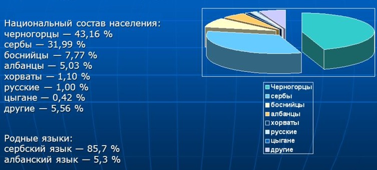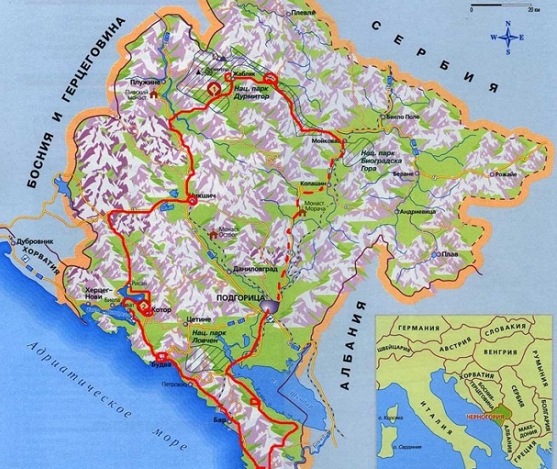 The government is a parliamentary republic. The President of Montenegro for 2019 is Milo Djukanovicand the chairman of the assembly (i.e. parliament) Ivan Brayovich. According to preliminary estimates, for 2018 the number of inhabitants of the country is about 622 thousand people. The time difference with the Greenwich meridian is + 1 hour, and with Moscow - 2 hours. The longest of the Montenegrin rivers (Tara) reaches 144 km, and Boyana - only 30 km; it used to be used for shipping, but now there is no such possibility.