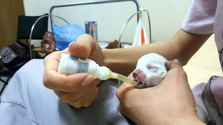 Feed the puppy with a pipette or syringe every 3 hours. Over time, you need to start introducing lure. The first 2 months of a Chihuahua's life should receive such products.