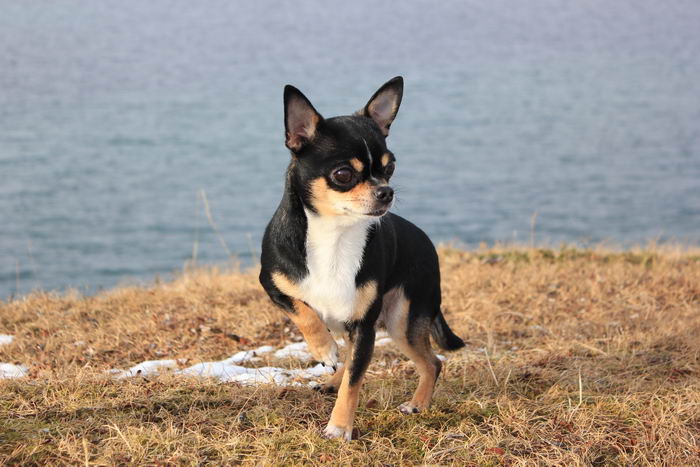 In the first and second month after walks were started, their duration should not be more than 20 minutes. In this case, the owner should not let the dog out of sight, he will need to make sure that the Chihuahua is not wet and does not freeze. And also we must not forget that larger dogs can injure the baby, so it’s better to stay away from them. With a large gathering of people or in public places should use a leash.