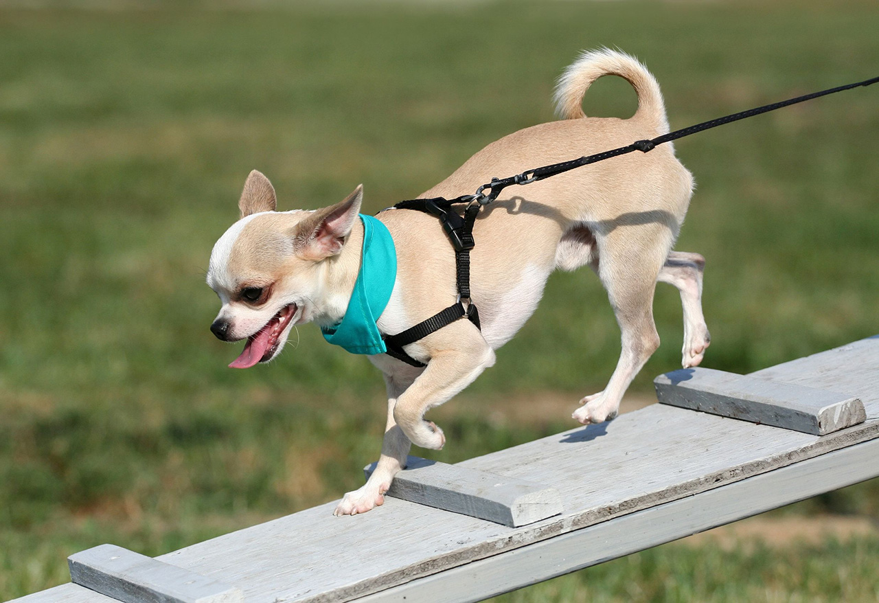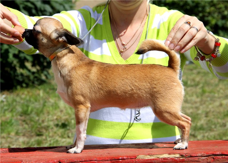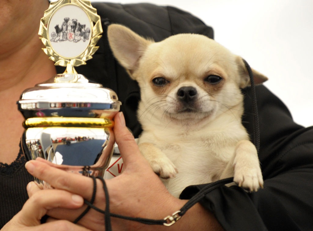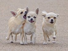 Chihuahuas are smart, nimble, hardy dogs. They are well trained in various tricks, they can tumble over their backs, jump over not very big barriers.