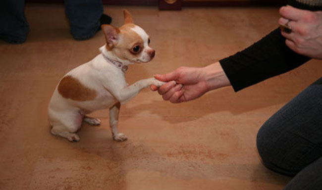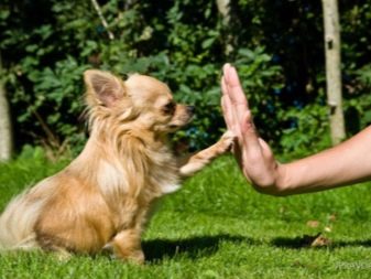 The command "Give a paw!" To the base, as already noted, does not apply. But the rare owner is not trying to teach her a pet. You can utter the command in any voice, as long as the animal visually remembers the gesture (your palm). First, the dog should be helped: take her foot and lift it up. Then ask her to do it herself.