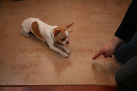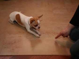 - "A place!" This command is prohibitive, it is pronounced in a strict tone with a finger pointing in the right direction. For the fault of a delicacy to give not allowed Therefore, if the dog intended to pull something off the table or decided to soak up your bed, you need to show your displeasure.