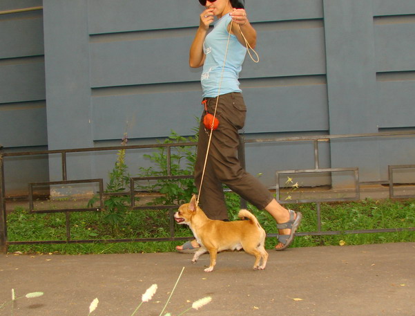- During walking the dog on a leash should lead the owner, not a dog. It is you who choose the motion vector, and not the Chihuahua sets the pace and direction of the walk. Well, if the dog goes with you in the leg. Often walk: it is useful for a pet to actively get acquainted with the outside world. It must be adapted to street noise. Watch how the dog reacts to animals teach it to indifferent reaction. To humans, chihuahuas should be generally friendly.
