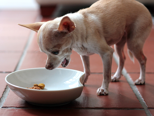 A Chihuahua puppy should be fed following the instructions on the dog food packaging. The size of the portion will depend on the protein content of the food and whether the food is dry or not. When the chihuahua's growth slows down, you need to adjust the amount of food in order to switch to adult feeding.
