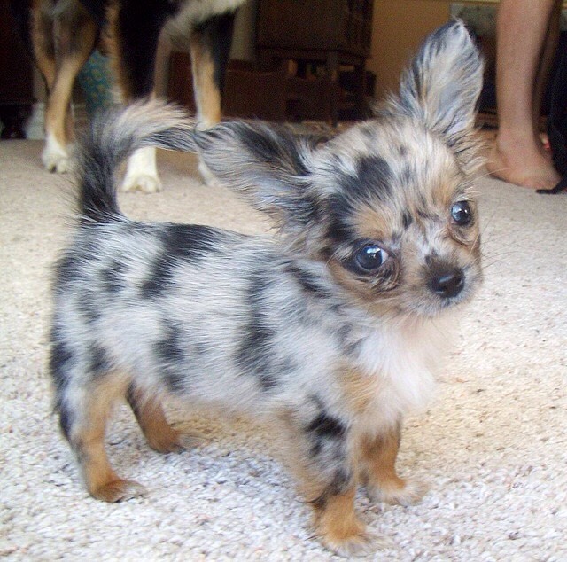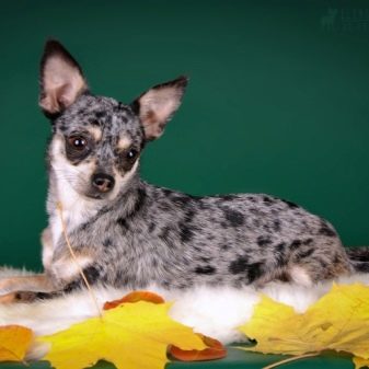 Color Merle (it is also called Marble) looks quite impressive and catchy, but it is strictly forbidden to chihuahua breeders. The color is expressed by not very uniform pigmentation of wool, on which there are patches of dark gray or, in general, a beige shade. Eyes are usually light blue or dark blue. Such deviations are caused by the predominance of the gene "M".
