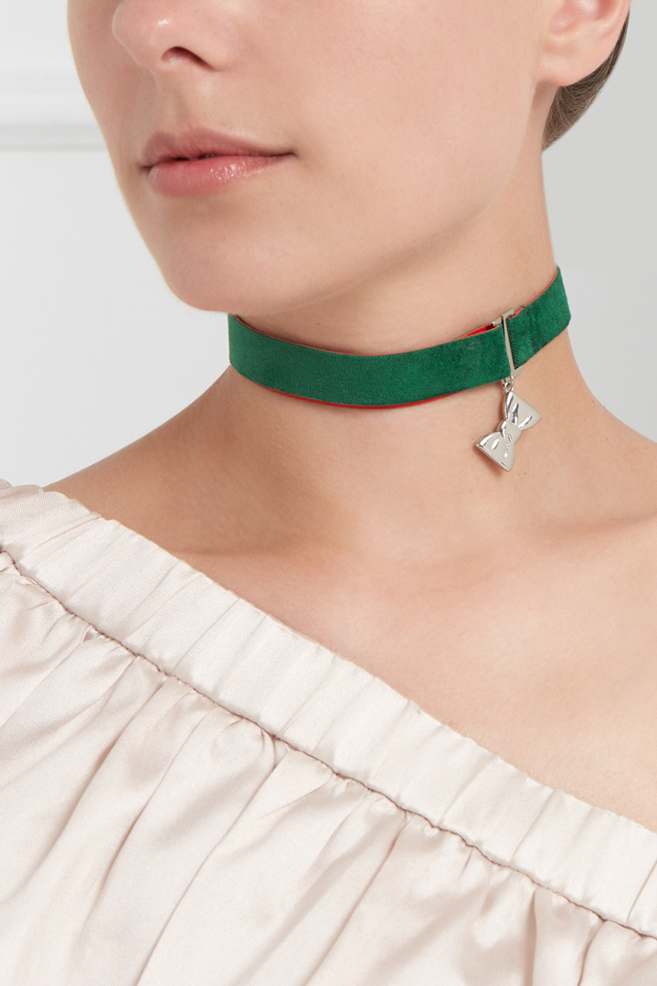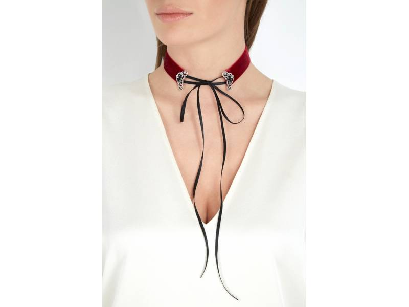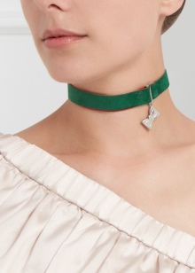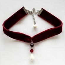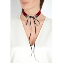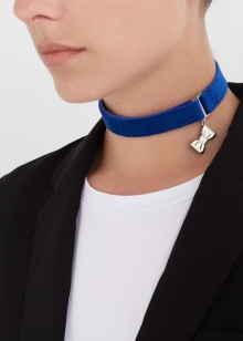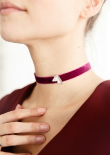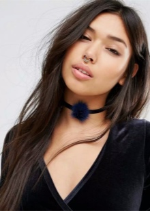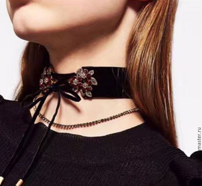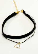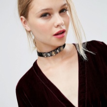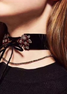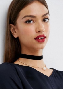 This season several varieties of velvet necklaces are in fashion. Most of them are performed in a single-color version, but there are models with contrasting decor.