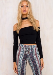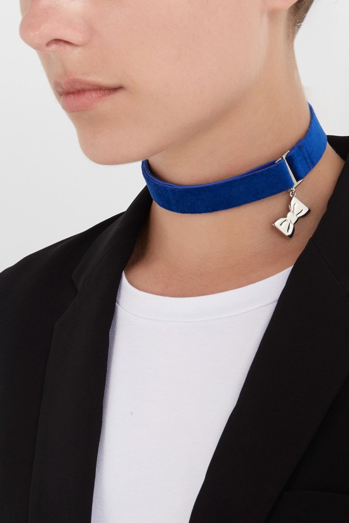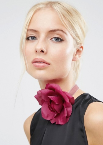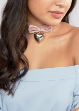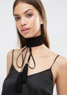 Creative women of fashion wear this piece of jewelry to a business trouser suit. A more casual bow can consist of a shirt and jeans, to which a narrow choker with a single pendant is matched.