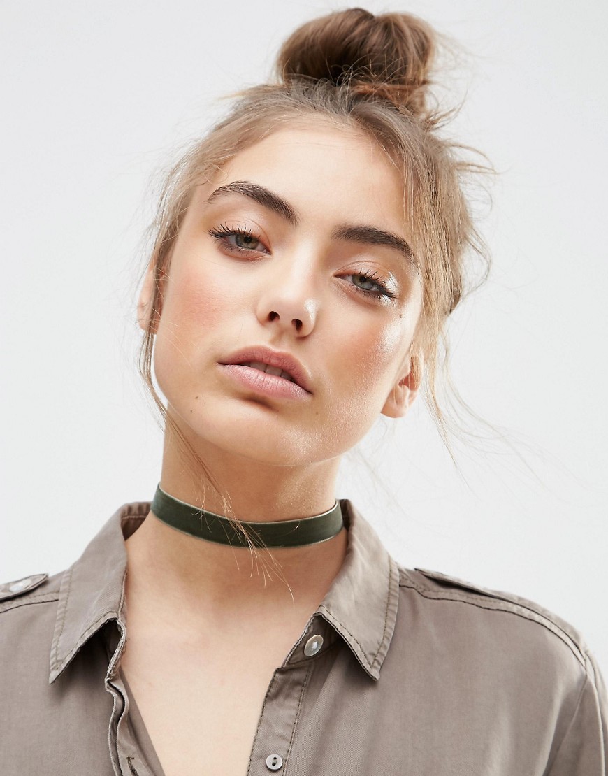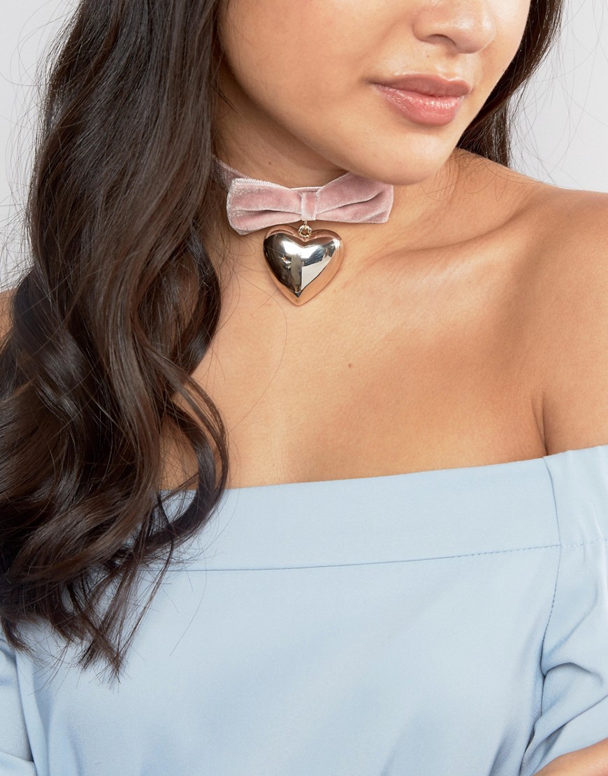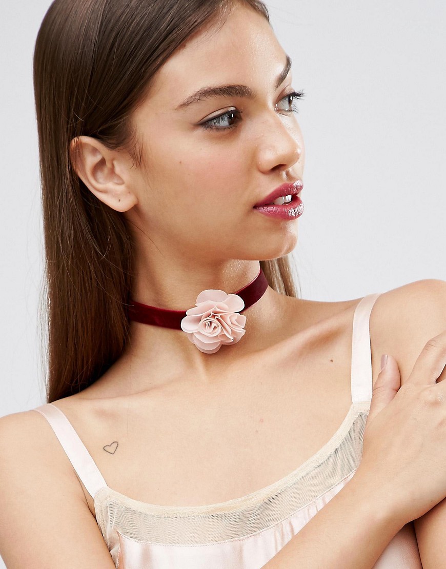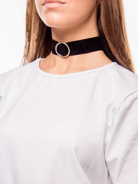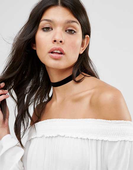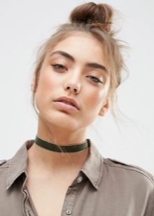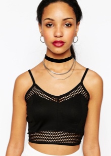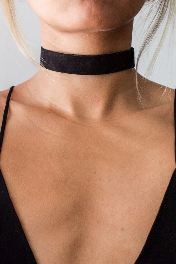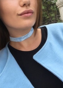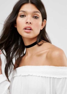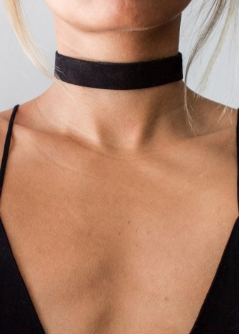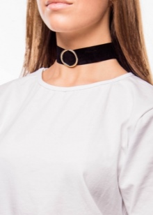 Wearing a choker means clothing with an open neckline. This accessory is not suitable for blouses with tightly closed collar and sweaters with high collar.
