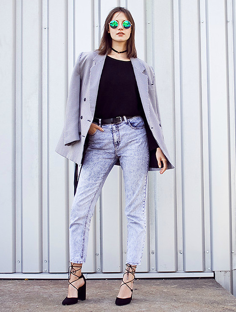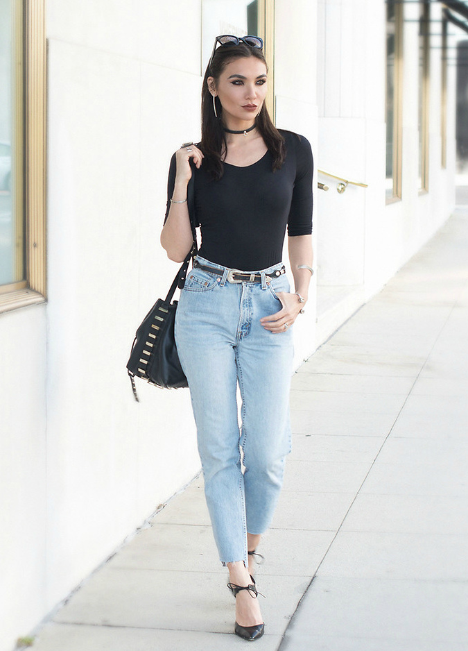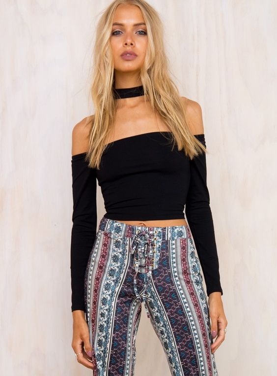 For urban dynamics, jewelery can be worn with white shorts and a black off-shoulder top. If it's cold outside, a set of oversized jacket and tight-fitting trousers will be a harmonious ensemble that will complement a black accessory of medium width.