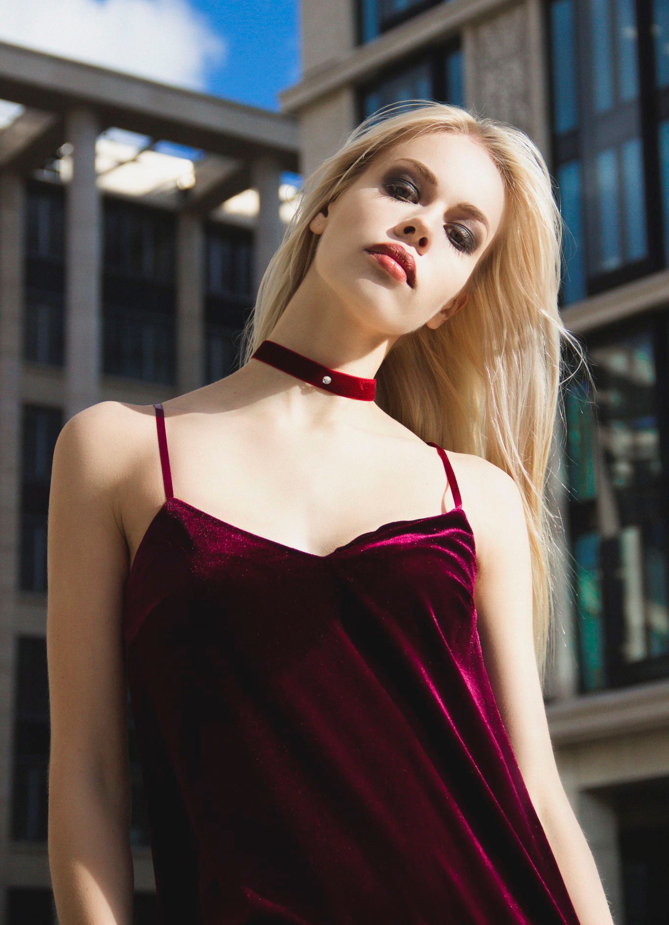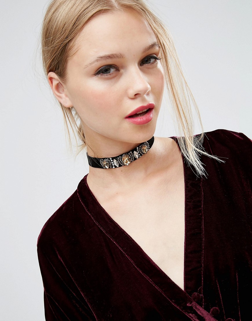 Stylists believe that the velvet choker can revive any outfit. The most beautiful and luxurious it will look with an evening look, classic colors and models of velvet.