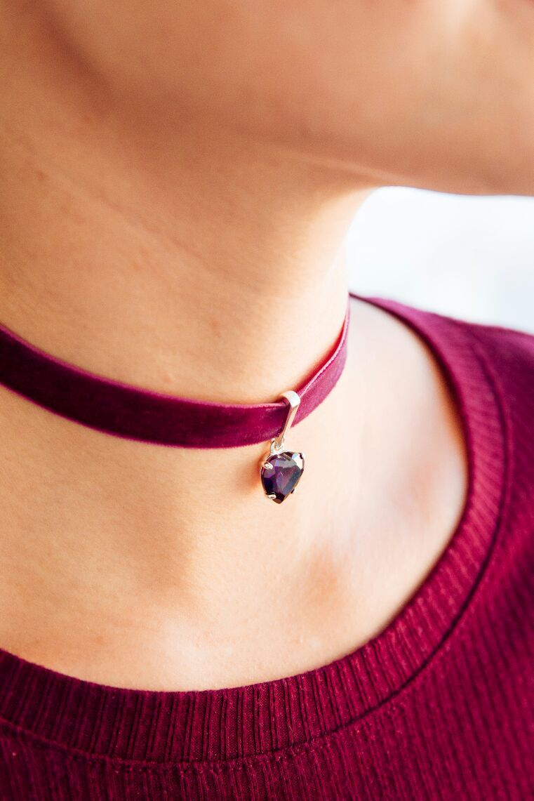 Velvet choker is considered a kind of necklace and is an ornament, tight-fitting neck. However, it does not squeeze or squeeze the neck and can be adjusted in volume.