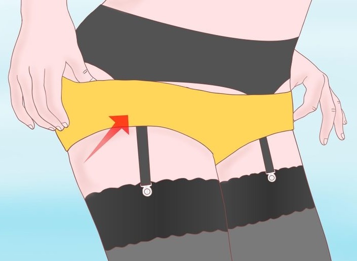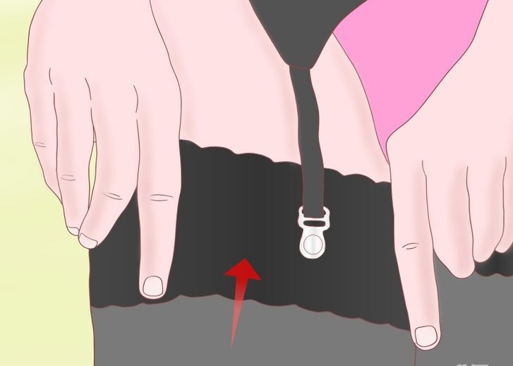 When the belt is fastened to the stockings, the stockings need to be adjusted. To do this, just need to hold on them with palms from bottom to top.