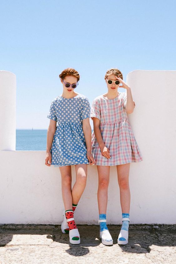 Colored cotton models with an elongated upper part are often used as décor, combined with shorts or short skirts. Usually the product is worn over light-colored tights, so that the outfit looks brighter and more creative.