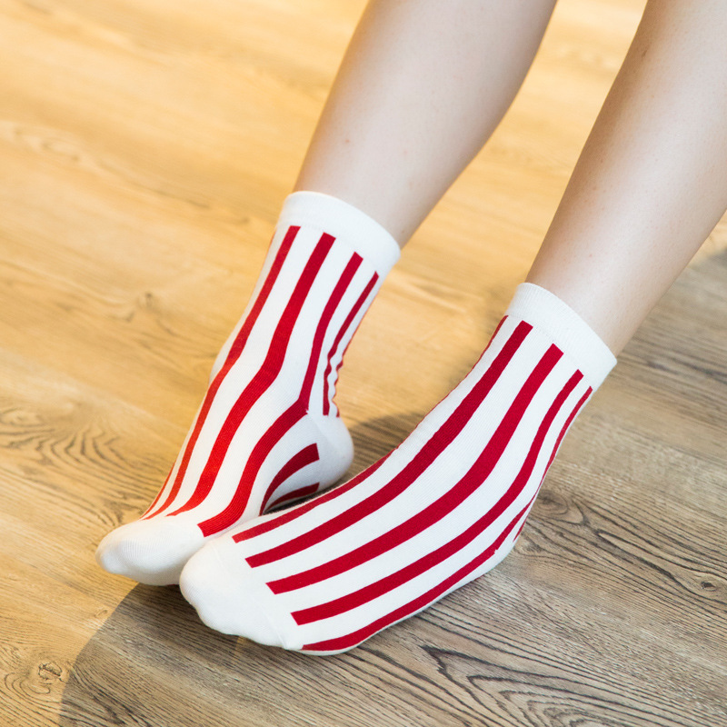 Strip. Of course, in talking about sock prints, the first thing that comes to mind is a striped print. But in the manufacture of this part, the vertical arrangement of lines is very rarely used, which even plays into the hands of many girls, because the horizontal strip visually creates the effect of narrower and slender ankles.