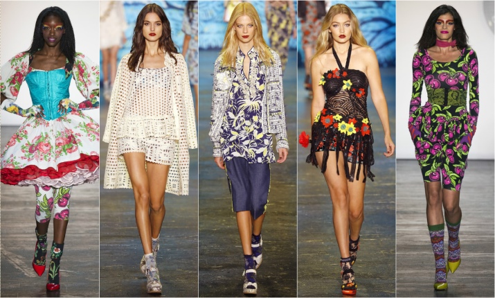 Color combinations on such products rarely have a chaotic arrangement, most often they are presented in the form of stylish prints. Consider the most popular ones.