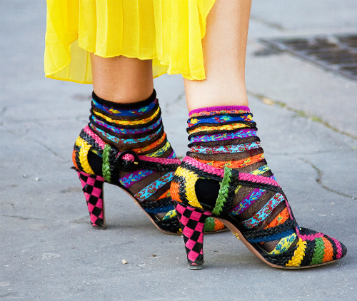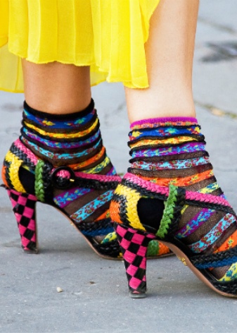 For daily bows there are no strict rules and boundaries, the main thing is to have a sense of proportion and remember that a short version of socks is the best choice for moccasins, sleeves, loafers and topsiders, as well as sports shoes. In the first and second cases, conventional models will be able to replace very short, more similar to the tracks. But the fashion world dictates its own rules and the combination of thick colored socks and sandals has become familiar.