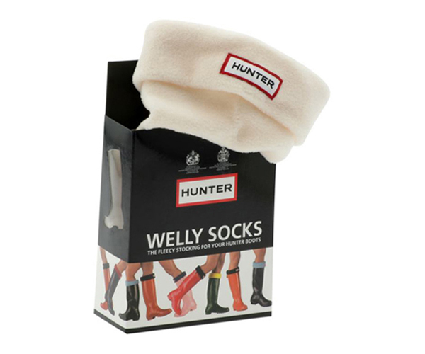 The most popular are Hunter fleece socks made by a brand for rubber boots. They perfectly complement the boots and perform a decorative function, having many options for execution.