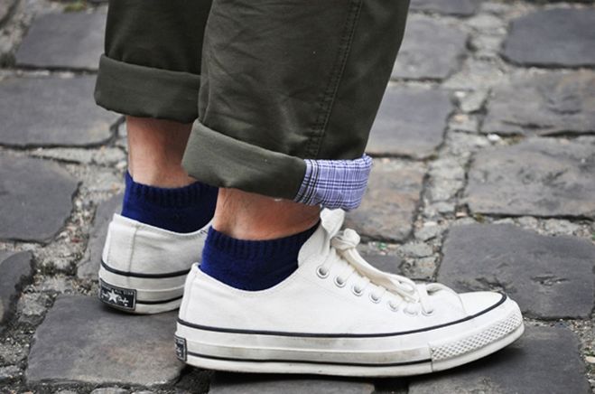 White sports socks are best to wear with sports shoes or with high boots, reminiscent of a tourist.