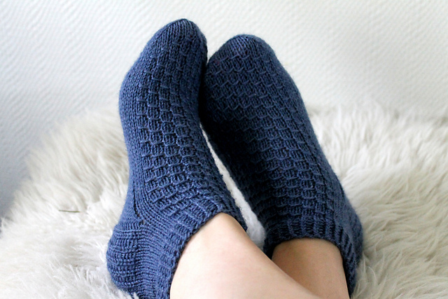 It is better to knit them from natural wool, as it prevents feet sweating and lets air through. Unlike synthetics, wool yarn is hypoallergenic and has antiseptic properties. Some types of down or wool will help relieve fatigue and pain in the joints.