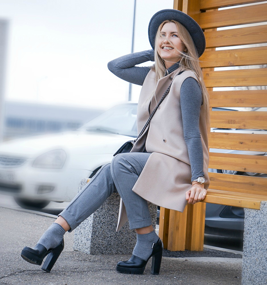 In combination with a strict trouser suit, you need to rely primarily on the color of socks. They should be the same color as the suit, but lighter than shoes - this is the principle of an office dress code.