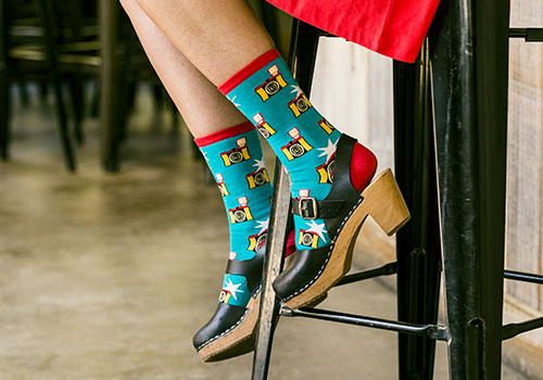 Branded products are painted in a variety of colors. Any buyer will be able to pick up an interesting and comfortable pair! You can purchase products in light and dark monochromatic colors or bright socks with patterns, patterns, embroideries and stripes.