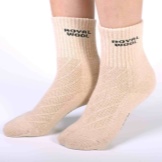 Models may have a dark heel and toe, elastic wide gum and trim in the form of a knitted camel. Often the socks are decorated with inscriptions with the manufacturer’s logotype. Usually letters are executed in a dark color.