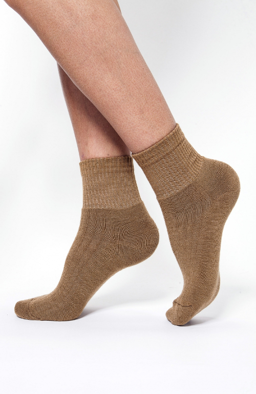 Such socks are often performed in warm brown shades. They are monochromatic, foot binding is simple, and along the rise is a relief pattern. On a rubber band, a double-humped camel and the inscription “Camel” are often depicted.