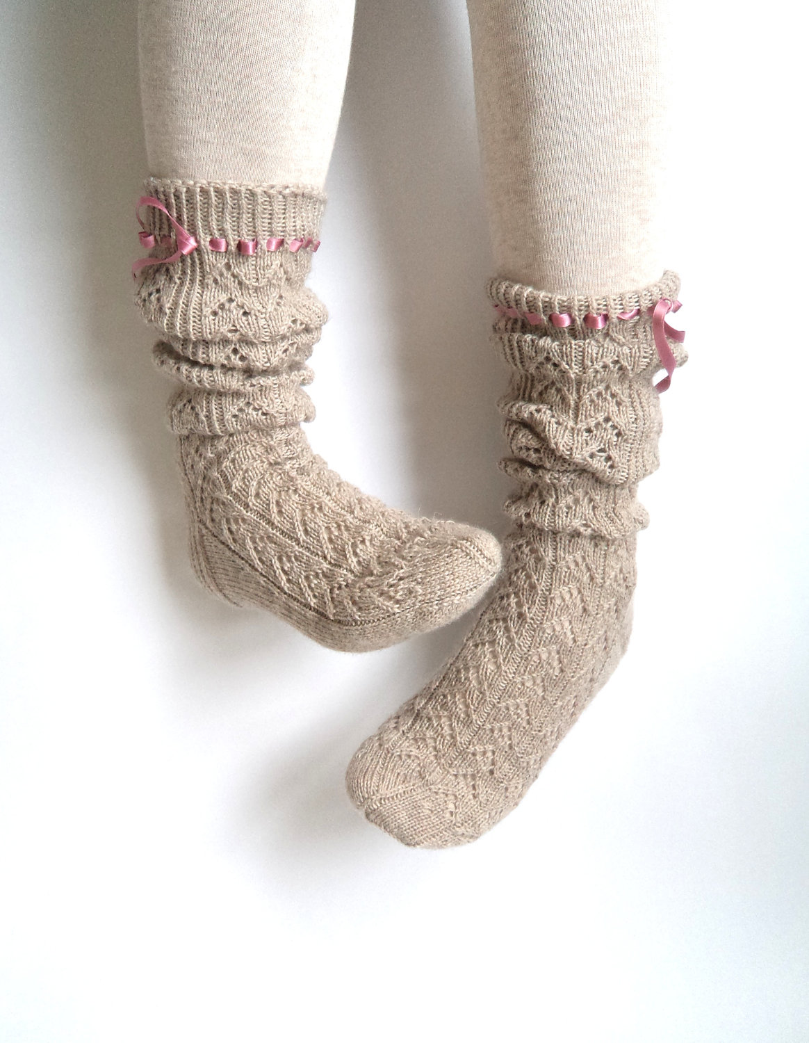 Some women of fashion prefer camel wool socks, which often become a warm accessory and a spectacular addition to the bow.