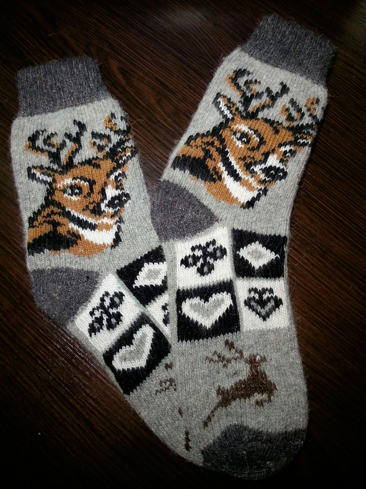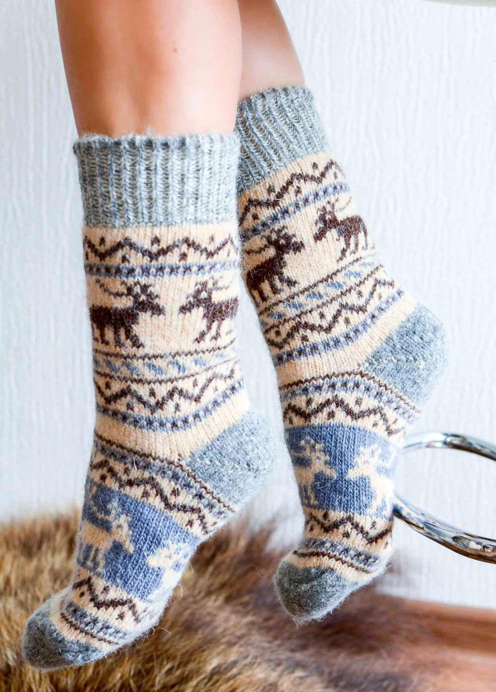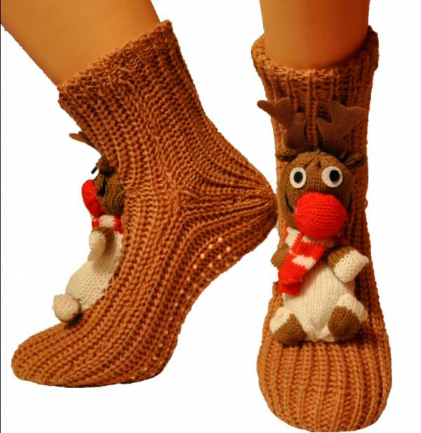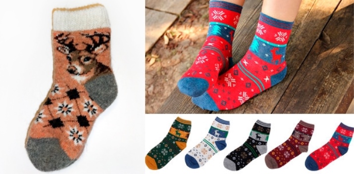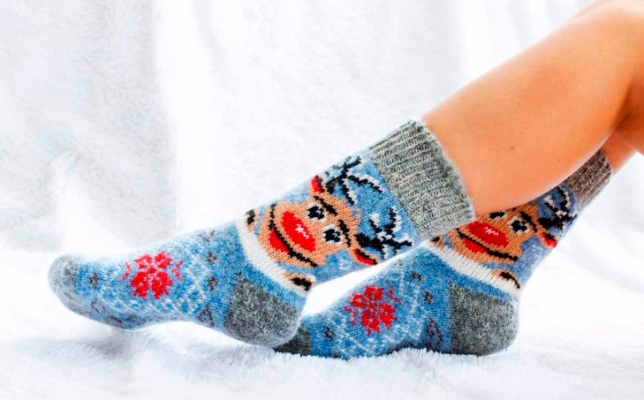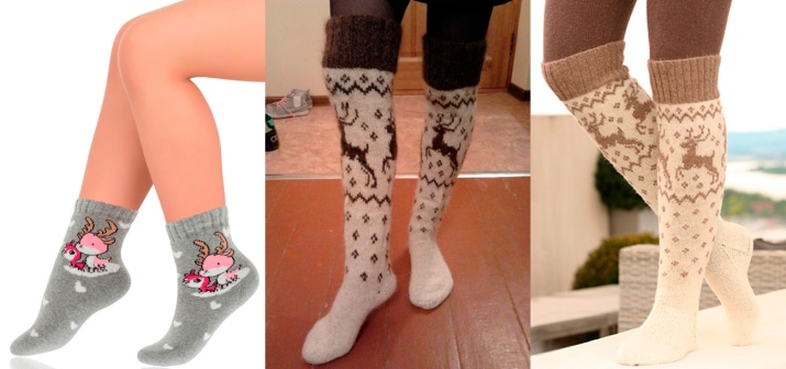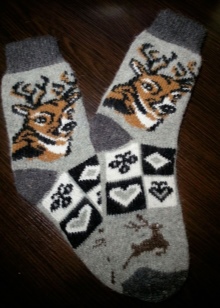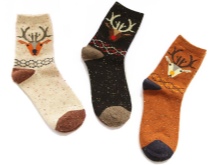 Socks with deer knit from wool. Therefore, they are warm and reliably protect the feet from the cold. They warm their legs quickly enough, especially after a long stay in the cold.