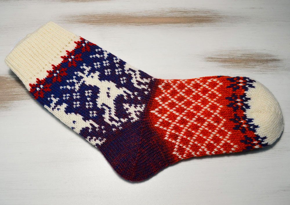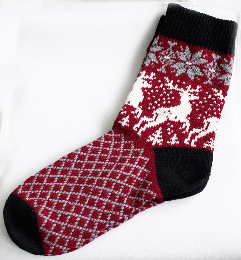 A nice Christmas theme is enjoyed by all customers. Warm socks with a Norwegian ornament are becoming the priority choice of accessories for the cold season. Often socks with deer become a Christmas present. They are bought in the store or knit independently with care for the closest. A handmade product warms the feet and pleases the soul.