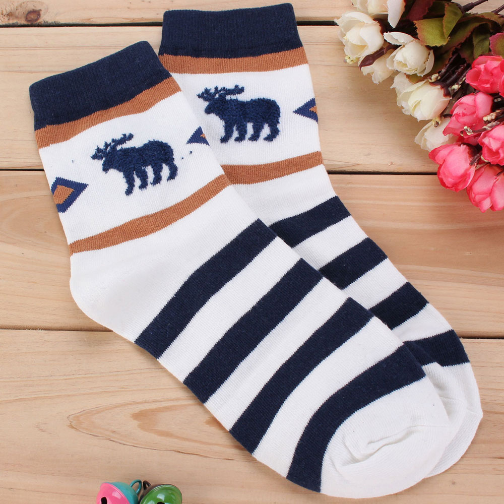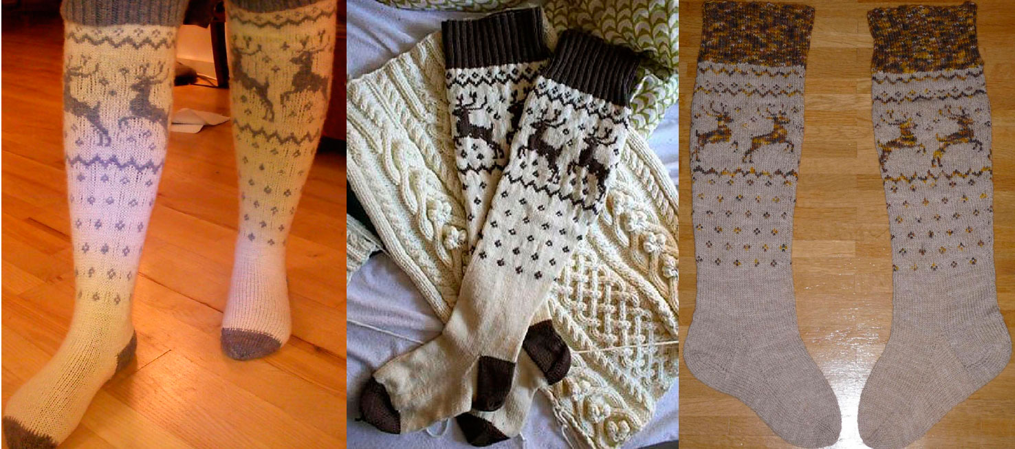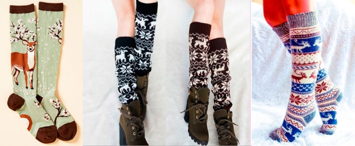 Today in fashion socks with deer, this print is often called the "Norwegian pattern." He came to European countries from Norway and decorates various warm clothes. The harsh climate of those edges contributed to the development of knitting. Thanks to the fabulous winter theme, the idea of the pattern was not long in coming. Among the suppliers of hosiery assortment, socks from Turkey and Japan are the most popular.