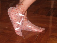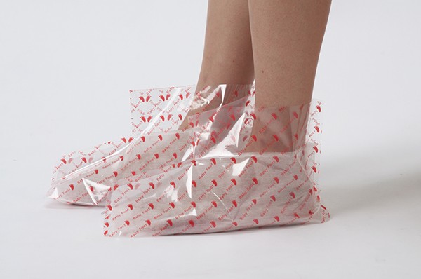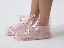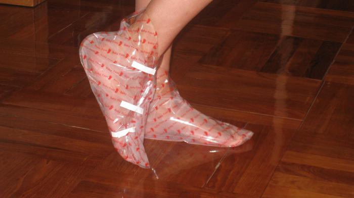 3. Put a polyethylene sock on each leg, carefully distribute the solution over the entire foot so that it touches the entire surface that needs treatment. On top of each sock, secure with tape that comes with the product.
