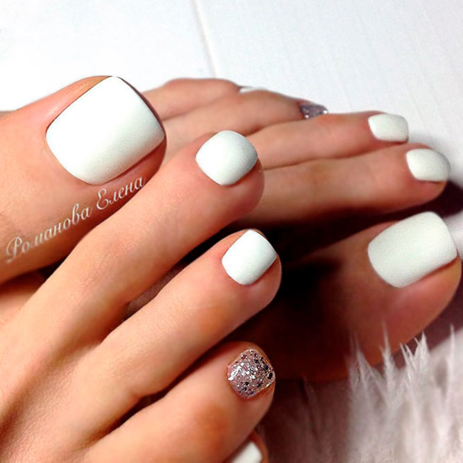 Glitter nail cover on your legs will never be superfluous, it will be relevant in any situation both in everyday life and in a solemn festive atmosphere. Pearl classic white color is sure to add luxury and tenderness to your fingers.