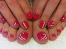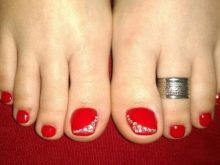 Today the trend is red lacquer. Both on hands and on legs, this color imparts passion to the image and makes it stand out from the crowd. To make it more piquant, many make themselves red pedicures with rhinestones, but in this case the main thing is not to overreact and do everything with good taste.
