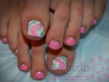 For sea pedicure, horizontal lines will be an interesting solution. The main condition is to make them clear. Moreover, the combination of a large number of colors makes it more fashionable. You can experiment with the bend of the bands, because it is not necessary that they be even. Colors for this option can be used both bright and pastel.